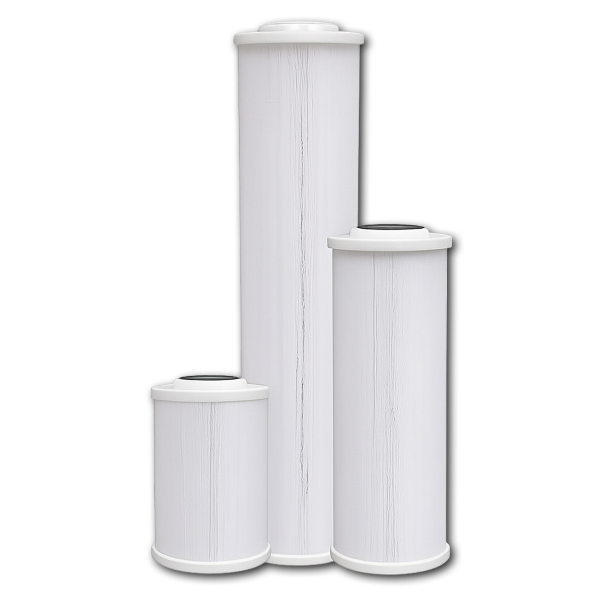 - Rugged 100% Synthetic Poly / Polyester Blend Media is the key component of these pleated cartridge filters